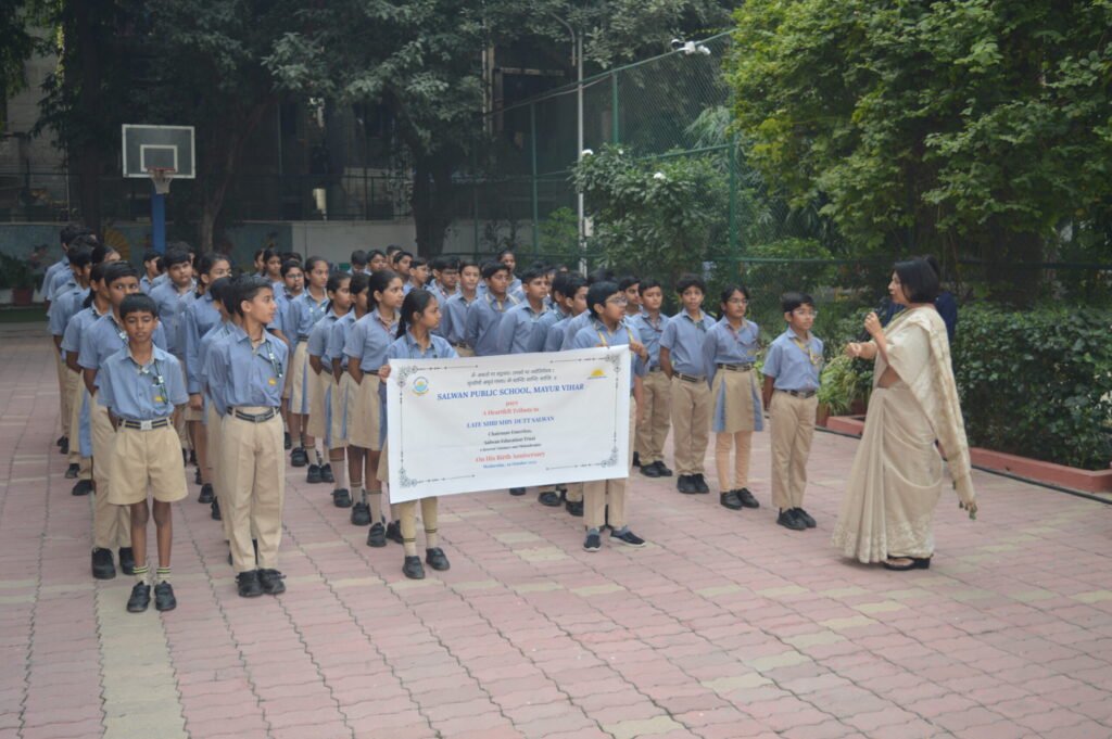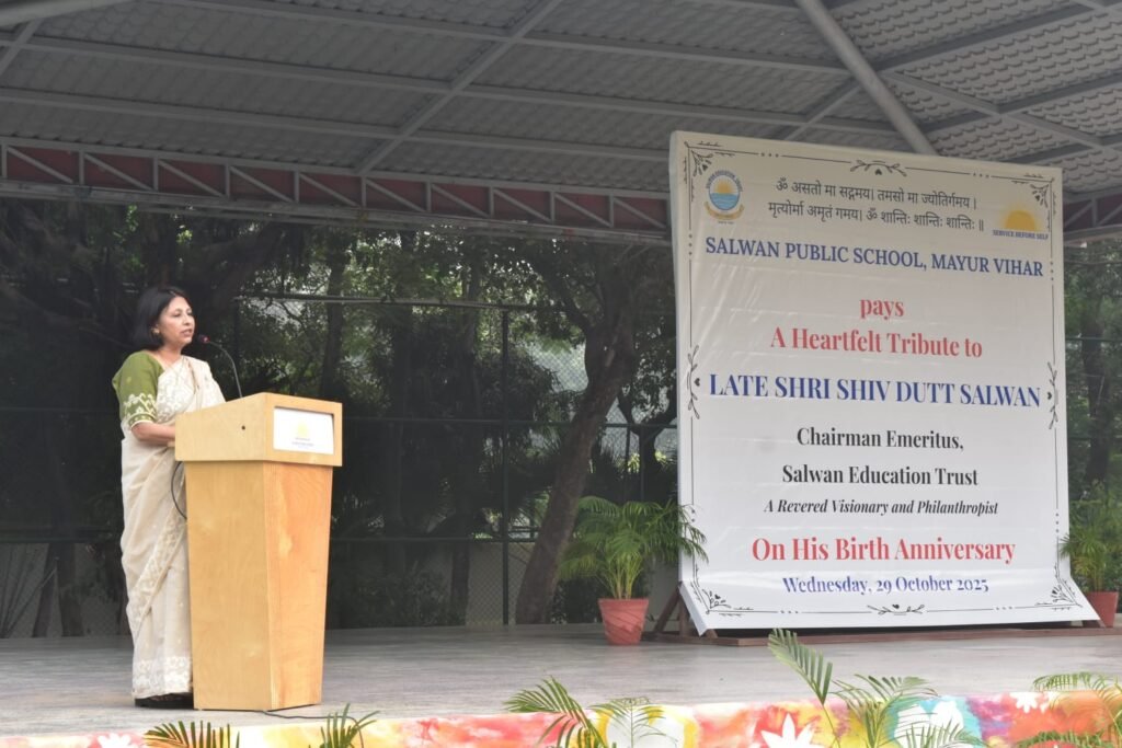 Salwan Public School, Mayur Vihar, commemorated the birth anniversary of its revered founder, Late Shri Shiv Dutt Salwan Ji, with a special assembly on Wednesday, 29 October 2025. The event was a heartfelt tribute to a visionary whose life embodied courage, compassion, and a lifelong commitment to education as a means of nation-building.