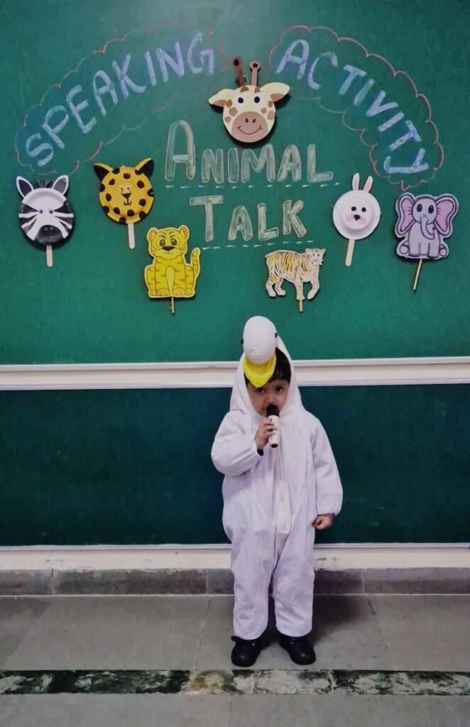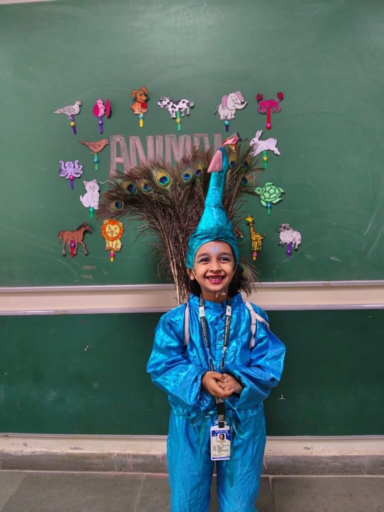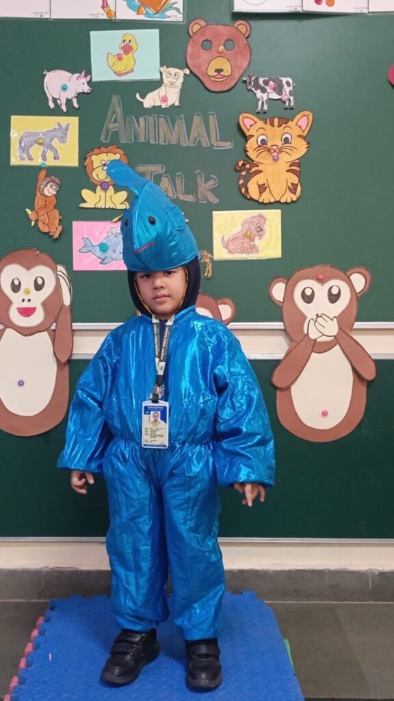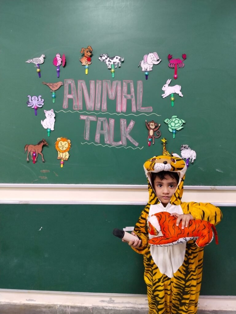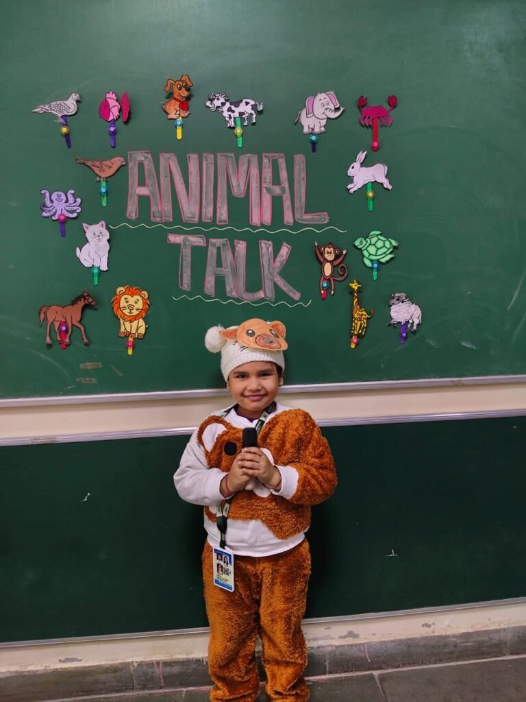 Children came dressed as their favourite animals such as lions, elephants, rabbits and cows, and spoke a few lines about their appearance, sound, food habits and habitat. The classrooms turned into a colourful animal kingdom, encouraging creativity, self-expression and stage confidence. The activity further helped reinforce vocabulary related to animals and nurtured a sense of love, care and respect for all living creatures.