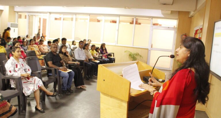 The programme opened with an insightful session on mental health, where Ms. Pachauri highlighted the importance of emotional well-being. She shared practical strategies such as mindful pauses, deep breathing, positive communication, and maintaining healthy boundaries. The conversation further explored how thoughtful and well-designed assessments can help reduce student anxiety.