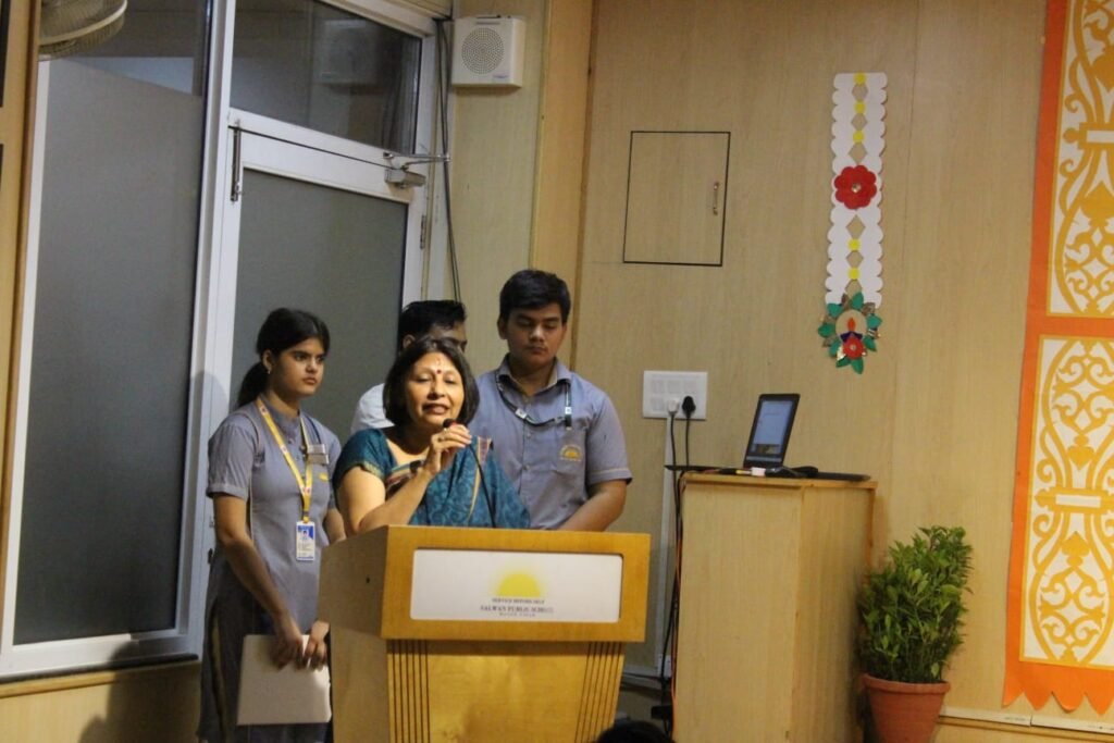 Principal Ma’am’s address inspired all, urging students to imbibe the values of Gandhiji and Lord Rama, practising truth, courage, and kindness in their daily lives. The cultural segment featured a thought-provoking Laghu Natika on the victory of good over evil, staged by students of Classes VI–XI, highlighting how virtues like honesty, respect, and righteousness triumph over selfishness and wrongdoing.