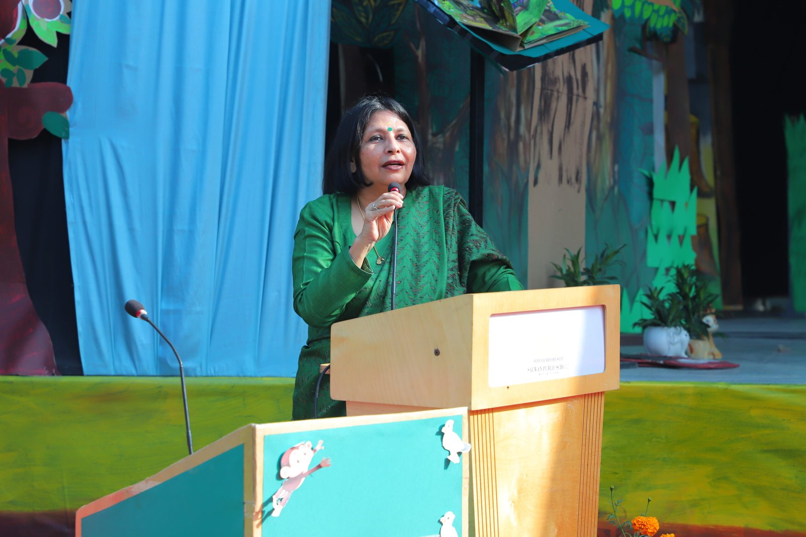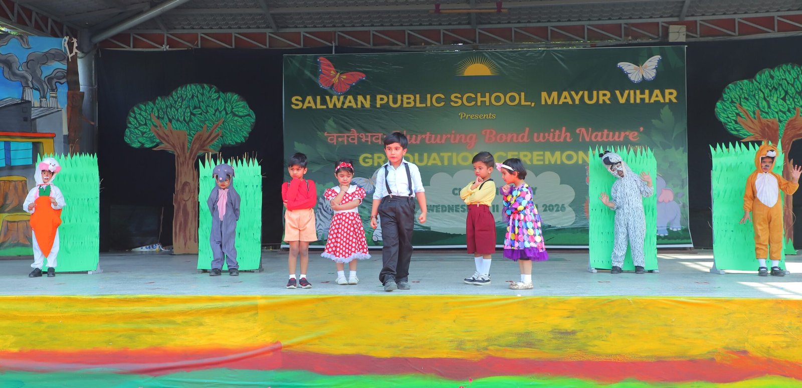 Students then presented a melodious Graduation Song, marking an important milestone in their early learning journey. It was followed by a thematic play, where the young performers conveyed the message of saving forests and protecting wildlife through meaningful dialogues, colourful costumes, and expressive actions. The play was complemented by energetic dance performances based on the theme.