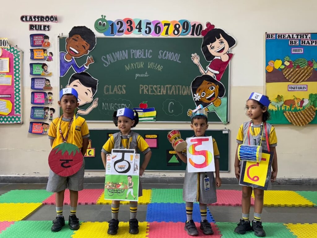 Nursery C performed ‘Vyanjano ki Duniya’. where children enthusiastically recited short poems to describe various Hindi vyanjans they had learned.